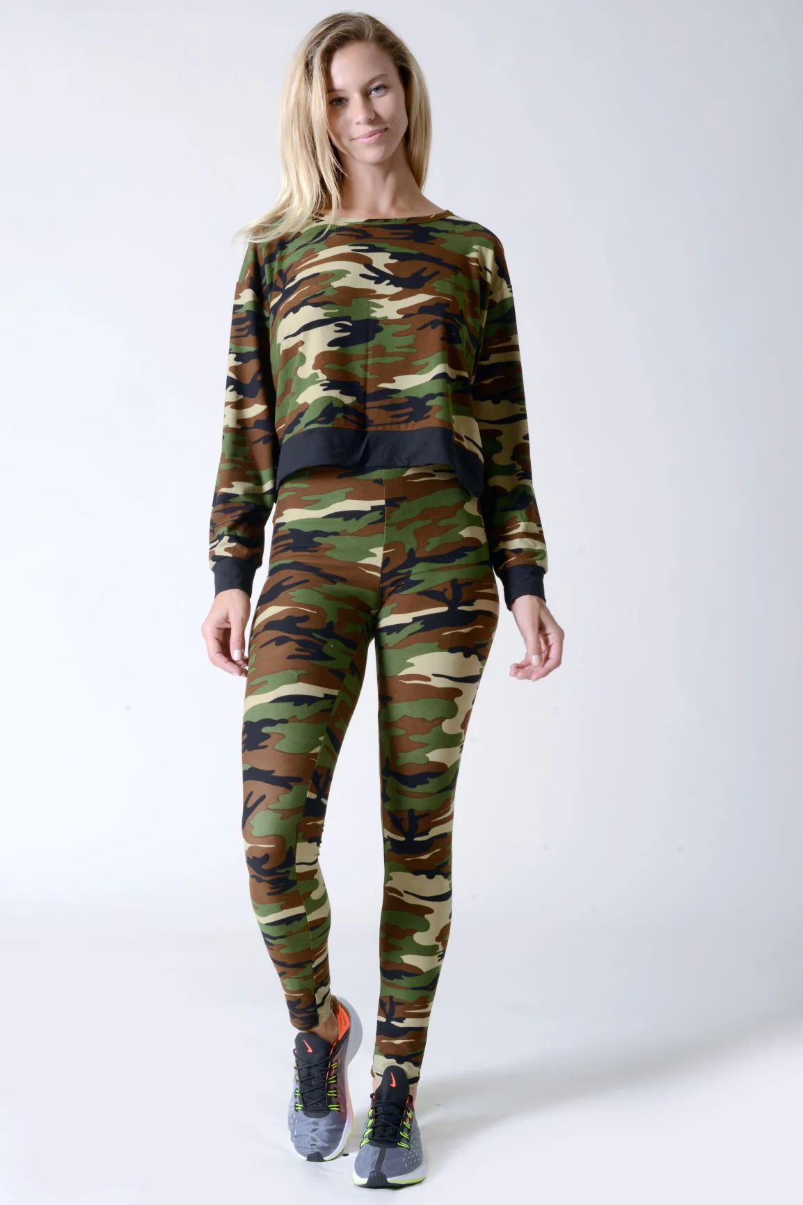Cute in camo and unstoppable! Your inner fashionista is going to shine through when you have this two piece set to mix & match or wear together with some edgy, lace-up boots!