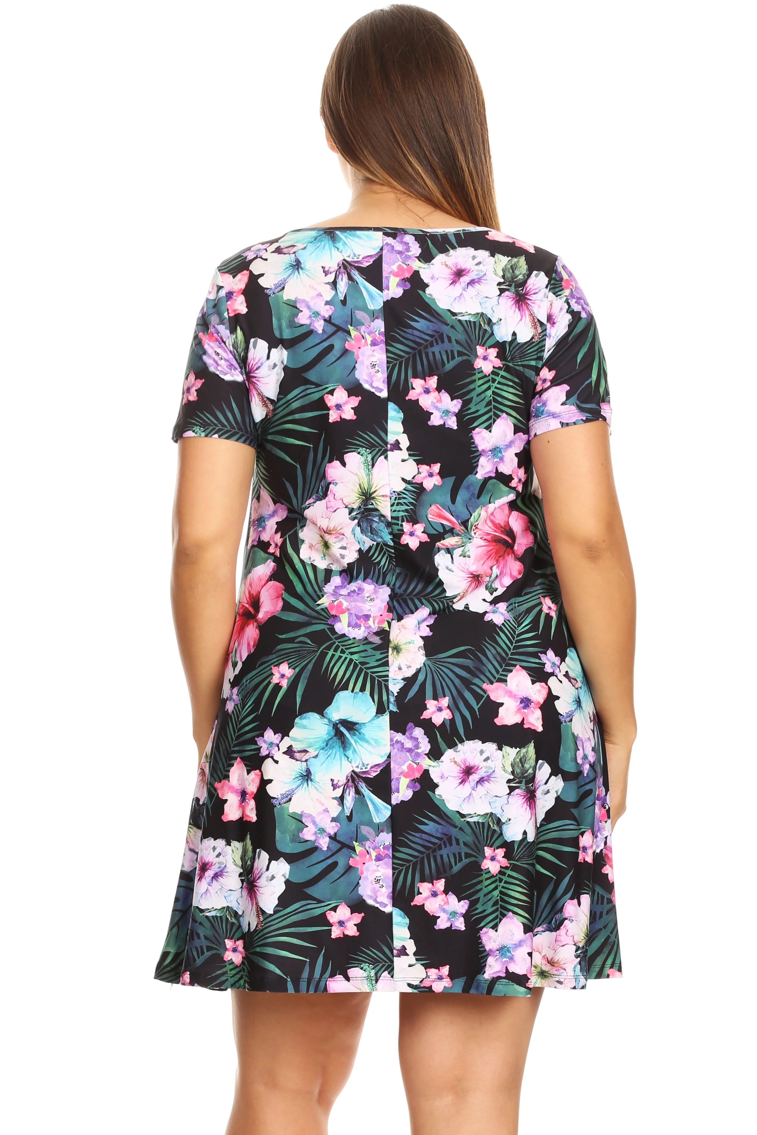 Plus Size Tropical Floral Short Sleeve Skater Dress
