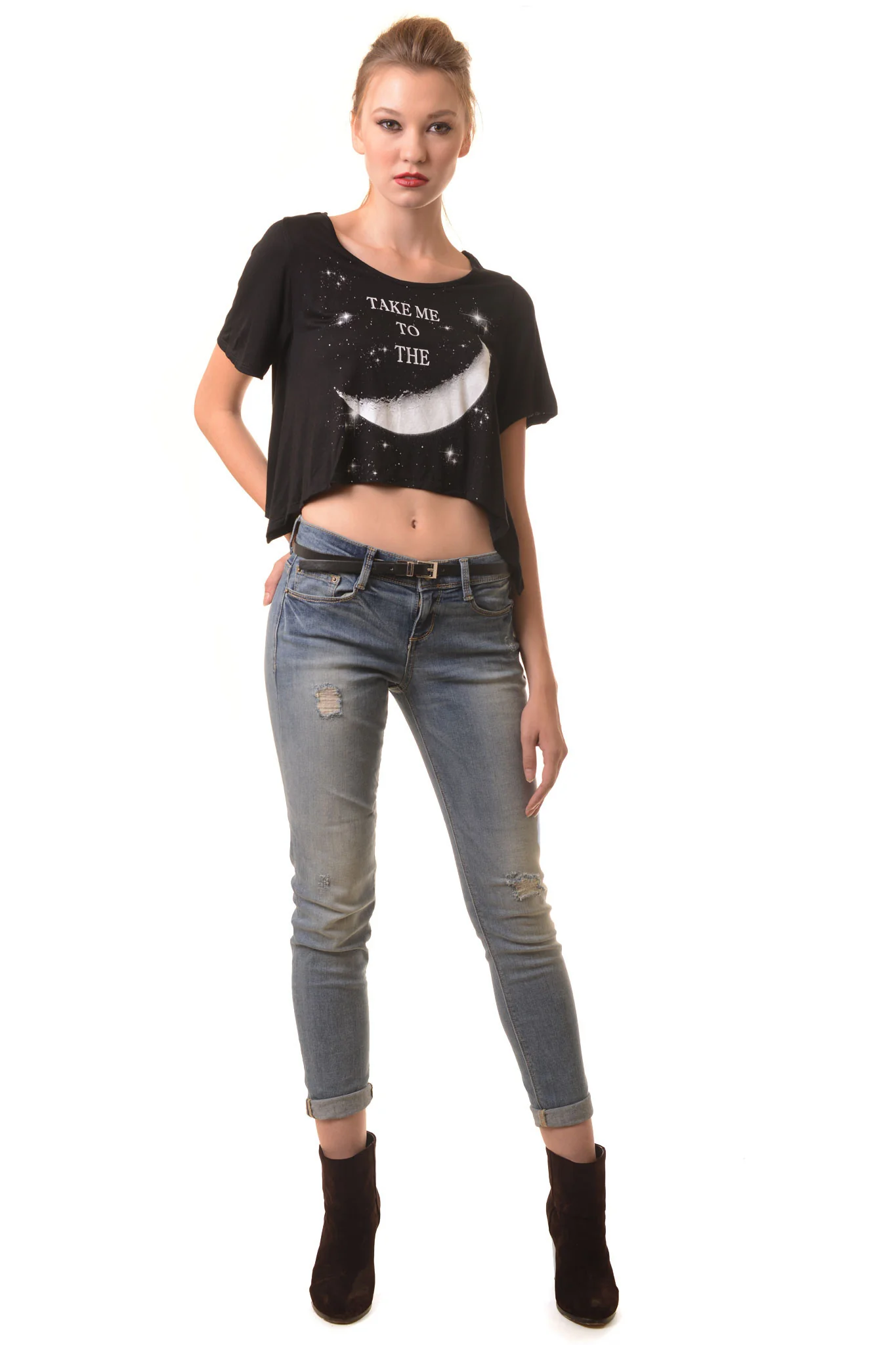 The only time we allow distress and boyfriends together, meet our Distressed Boyfriend Skinny Jean. For all women who fear buying jeans online, fear no more! We searched high and low for the perfect pair and we struck gold! Mid-low rise in a medium wash for all your casual needs. Featuring 5 pocket construction with zipper fly, button closure, and belt loops. Slightly cropped leg.Â