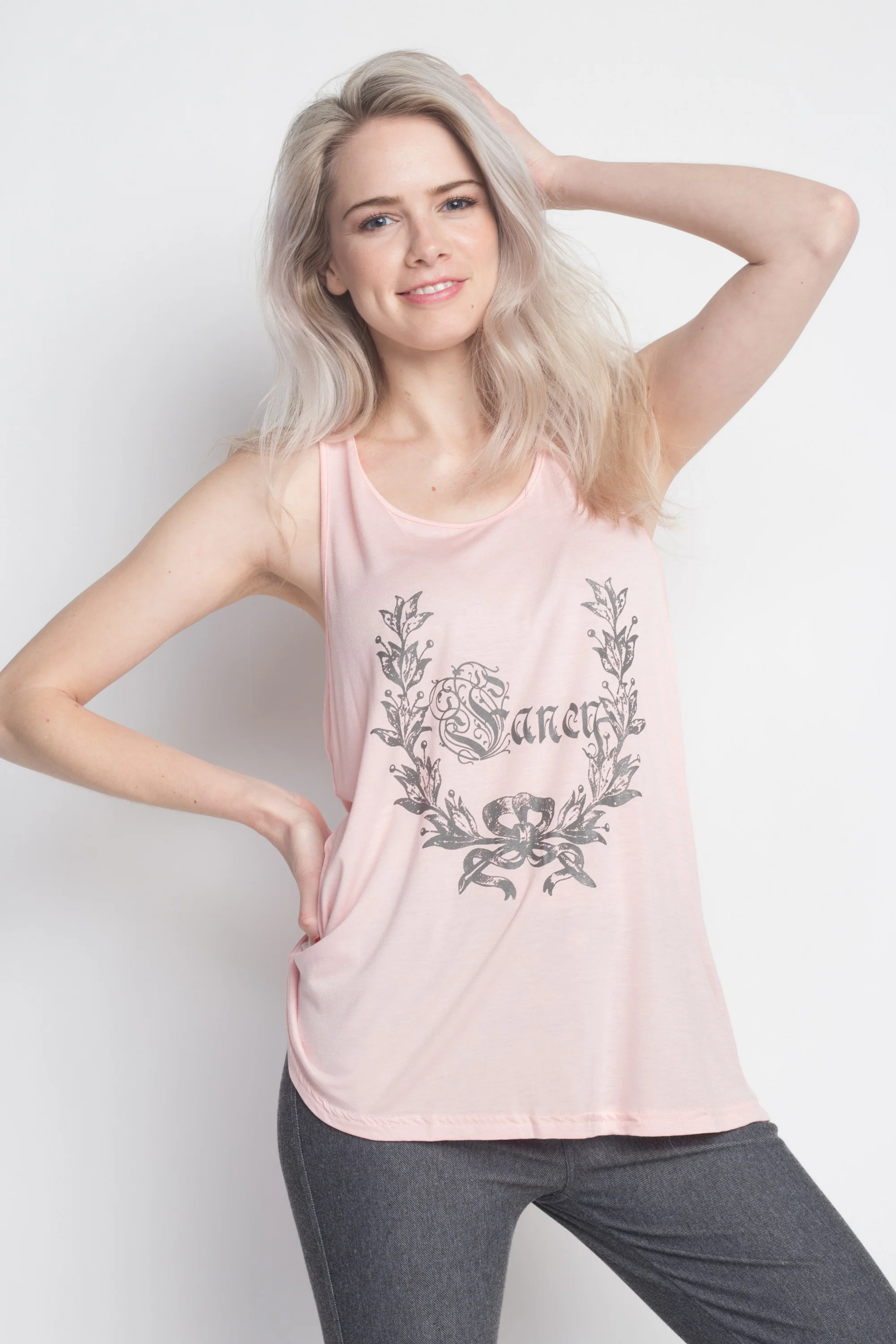 Channel your favorite diva with this graphic tank. Screen-printed graphic adds a cute detail to the flow of the racer-back tank. Perfect for festival season, throw it on over a bandeau and some cut-offs and you’ll be on your way in no time.Â