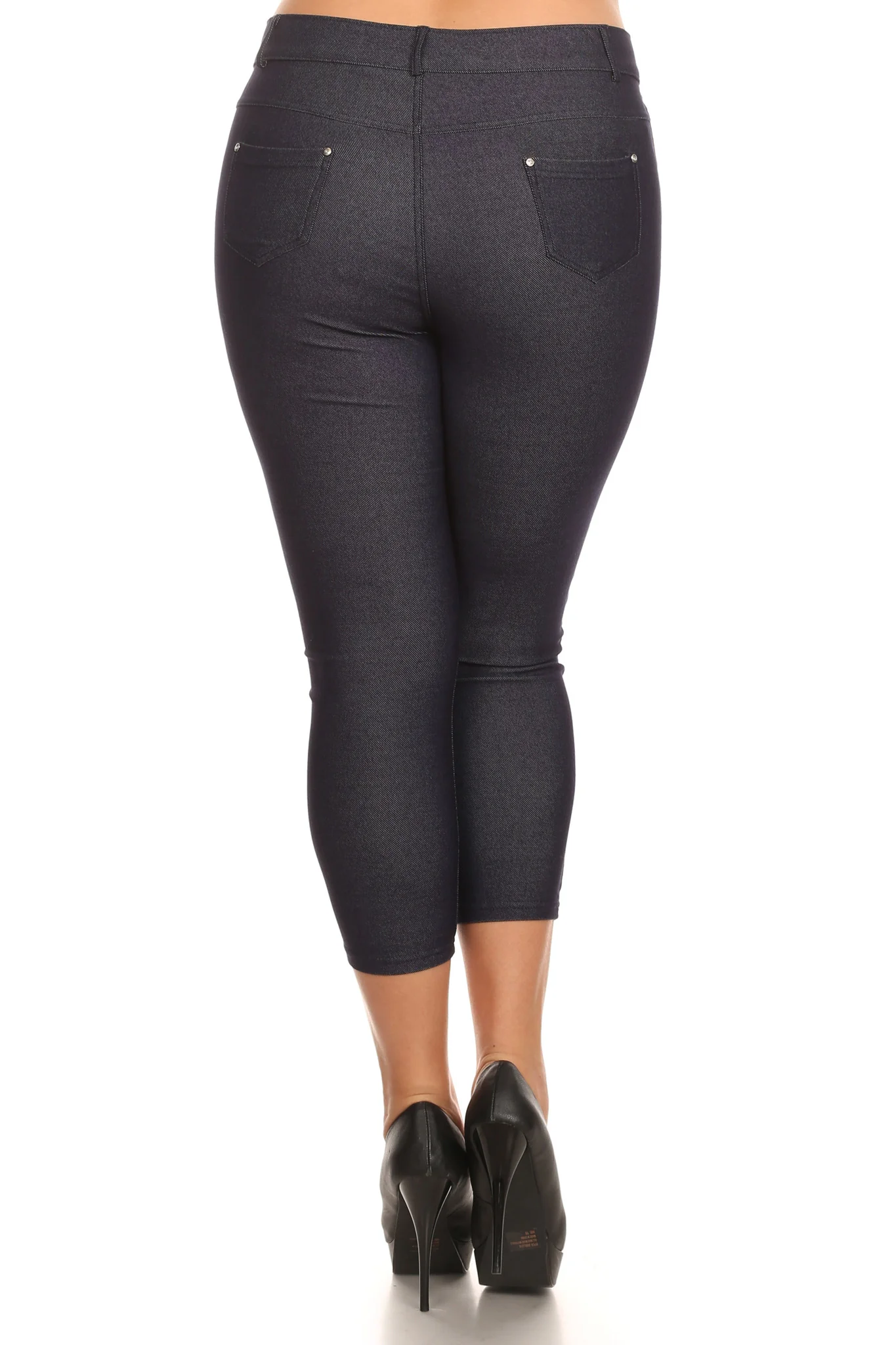 Flash those assets, girl! Our Plus Size Linda Capri Jegging is the perfect mix of sexy and cute. Her cropped leg makes sure your footwear game is on view. Cotton blend is breathable, yet contours the hips for an hourglass silhouette. Non functional zipper and button closure gives you more time to get out the door. Stock up in your favorite colors!