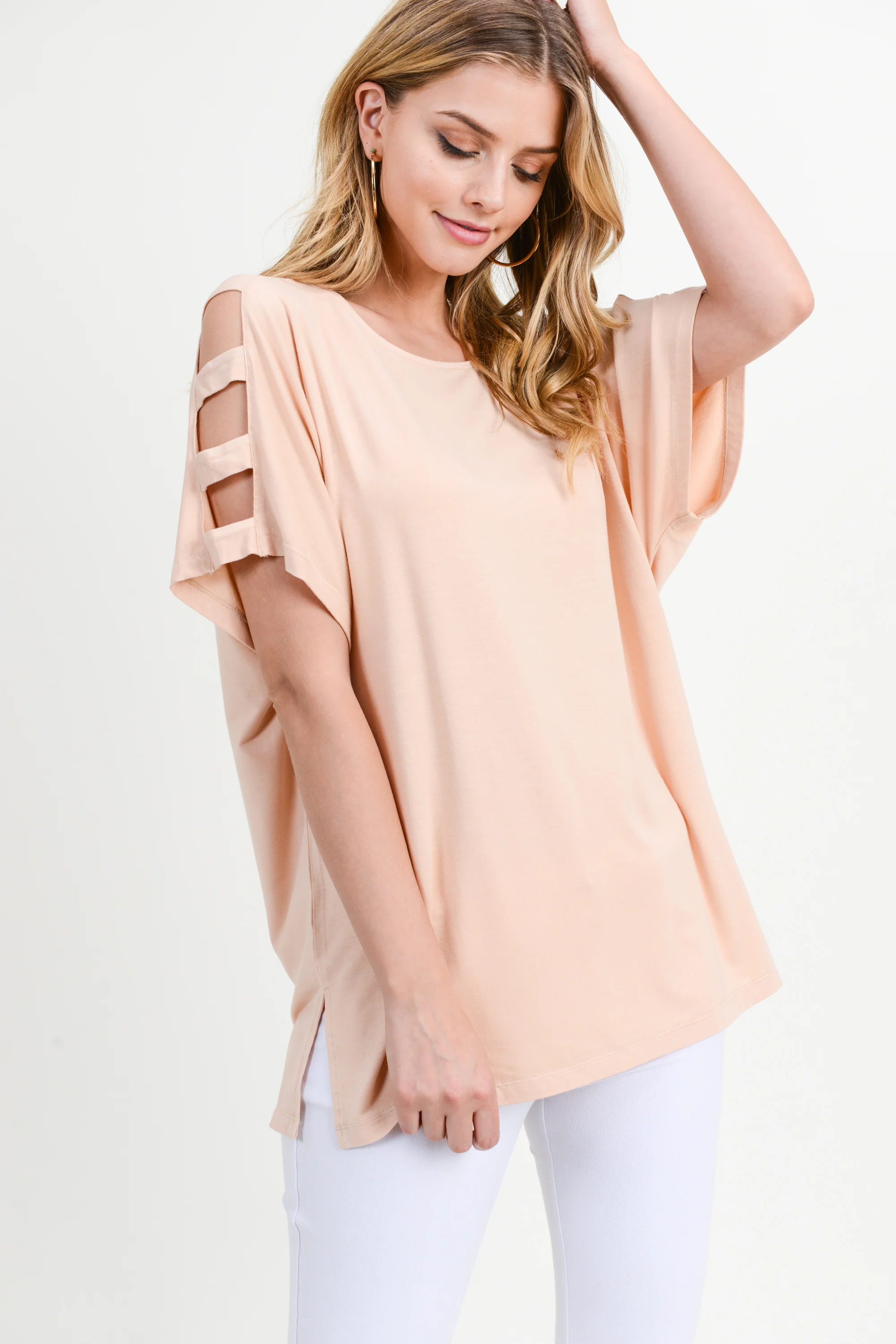 Lisa Short Dolman Sleeve Top with Lattice Detail