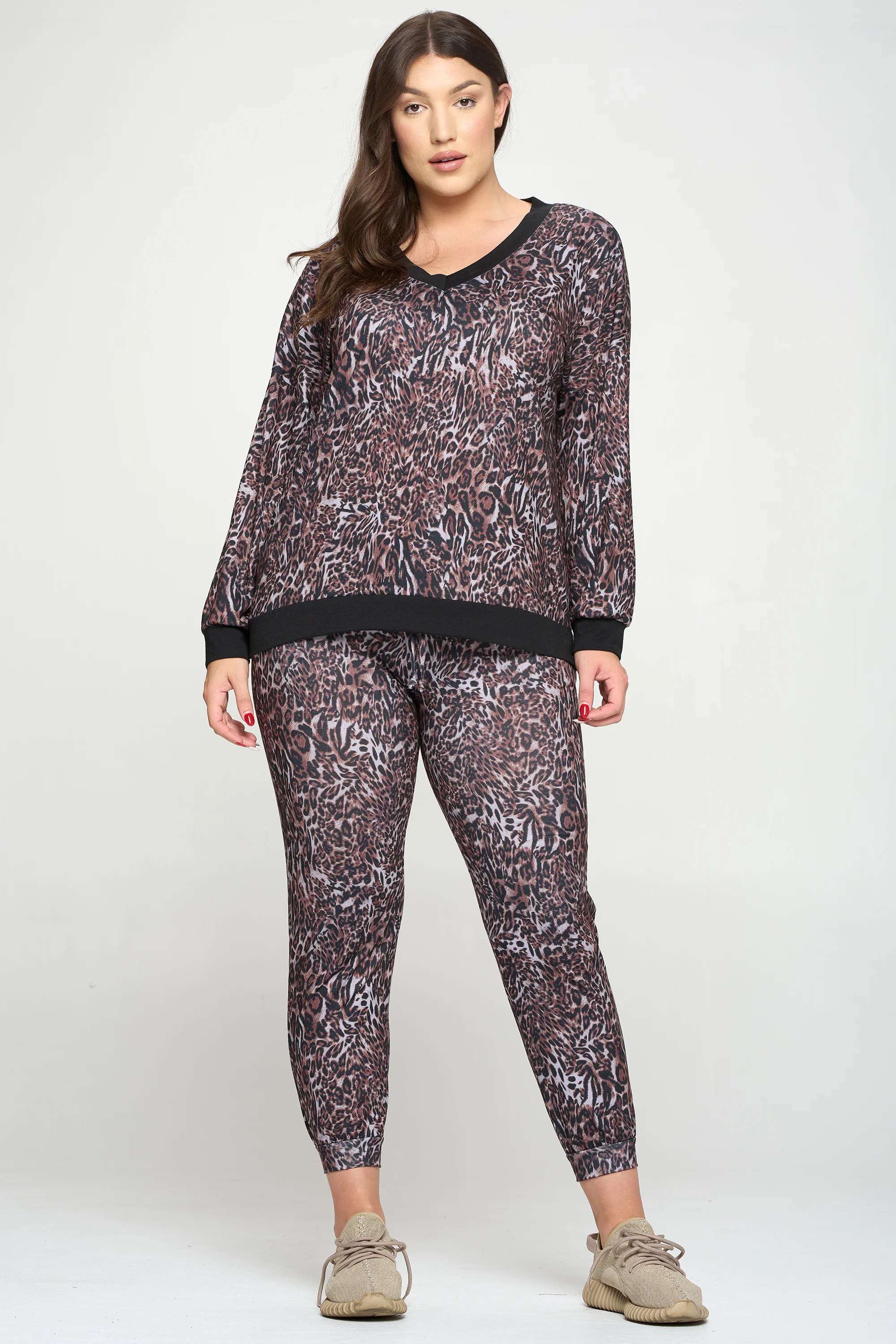 Plus Size Striking Leopard Print Matching Lounge Set