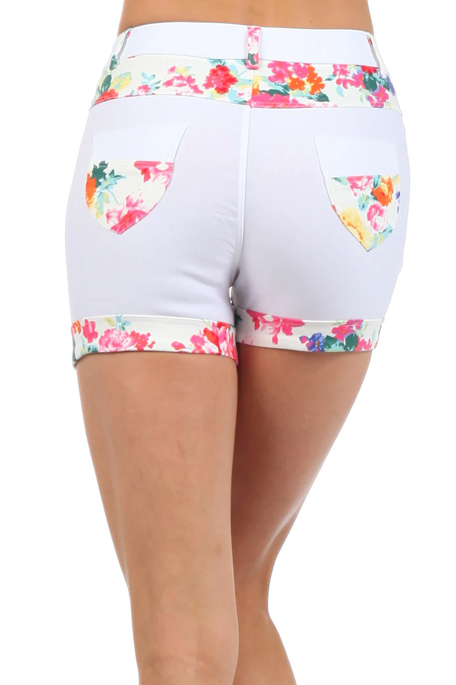 Ello Poppy! Vibrant floral motif color-blocked with wraparound white trim. 4 pocket construction for all your essentials within reach. Cotton blend is breathable and lightly shapes the hips. Perfect with a structured blazer and fun espadrille sandals.