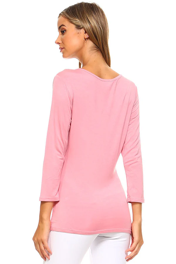 Whether you're looking to layer or just to complement your favorite pair of pants, our 3/4-sleeve scoop neckline top is all you need. It features a string neck tie, fitted silhouette, and is very comfortable for all-day wear. Â